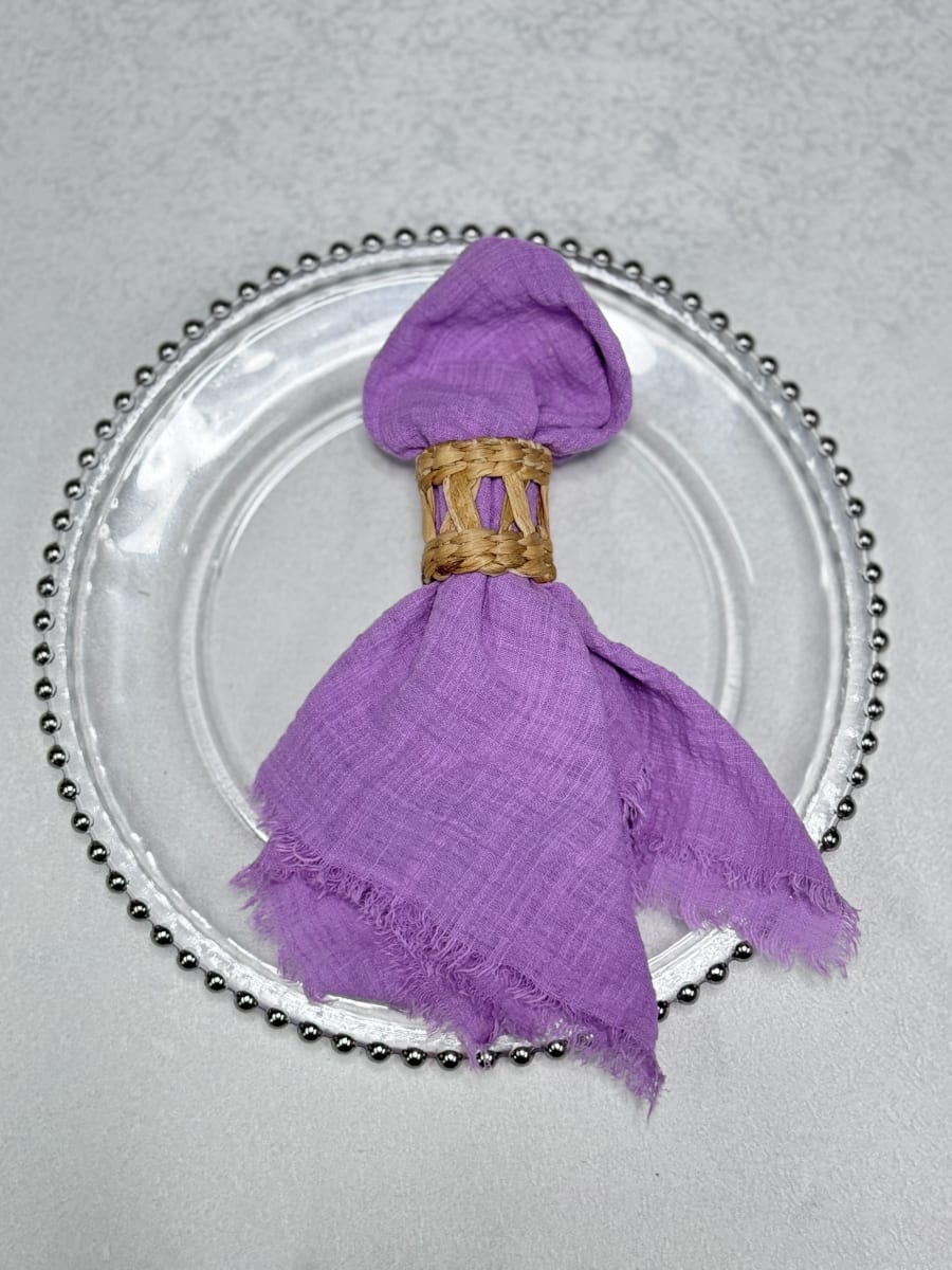 Whether you're planning an intimate gathering or a grand celebration, our Lavender Cheesecloth Napkin is a must-have accessory. Its soft lavender hue complements a variety of themes and color schemes, making it a versatile choice for any occasion.