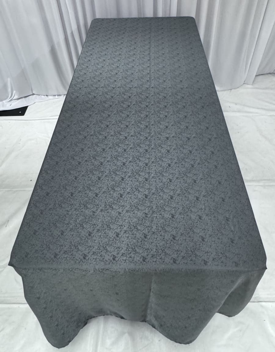 Make your events truly special with our Covington Rectangular - Grey tablecloth! Perfect for 6ft rectangular tables, this stunning floor-length tablecloth adds a touch of elegance to any occasion. Whether you're hosting a wedding, a corporate event, or a special celebration, this tablecloth is a must-have for your decor.