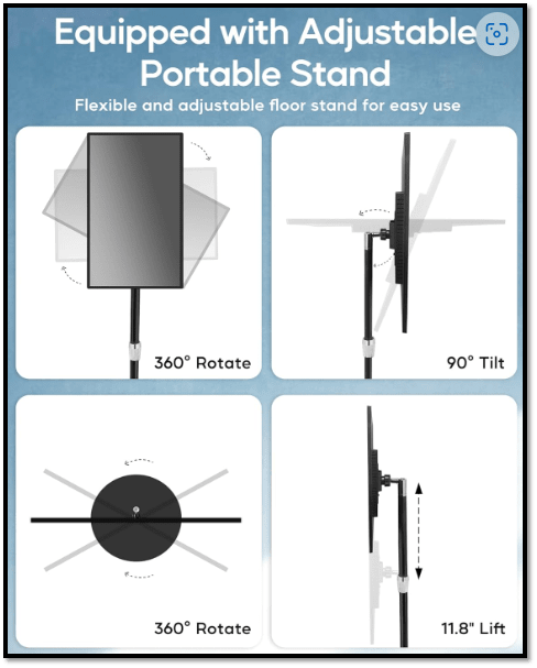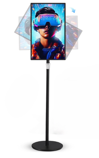 Included with the monitor is an all-metal floor stand that provides ultimate flexibility. Easily adjust the monitor to your preferred angle by lifting, rotating, or tilting it as needed. This feature guarantees a comfortable and customizable viewing experience, whether you're presenting to a group or working on individual tasks.