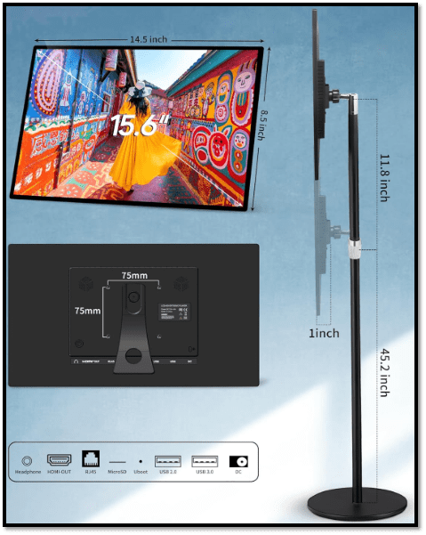 The 15.6" LCD screen boasts a stunning 1920x1080 pixel resolution, delivering high-definition visuals that captivate and engage. The 10-point capacitive touch panel ensures smooth and precise touch interactions, making it an ideal tool for presentations, educational sessions, or creative projects. With a 0.4" ultra-narrow bezel and a 0.3" ultra-thin body, this monitor combines elegance and functionality in a lightweight package, weighing only 2.3 lbs.