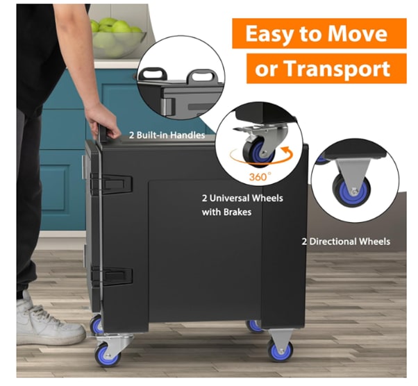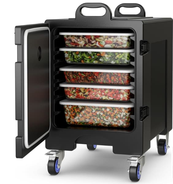 With an impressive 81-quart capacity, this food pan carrier can hold up to 5 full-size food pans of hot or cold food. The various intervals allow you to place different sizes of food trays as needed. This makes it an ideal choice for canteens, restaurants, large-scale hotels, and corporate gatherings. From appetizers to main courses and desserts, keep all your dishes at the right temperature and ready to serve.