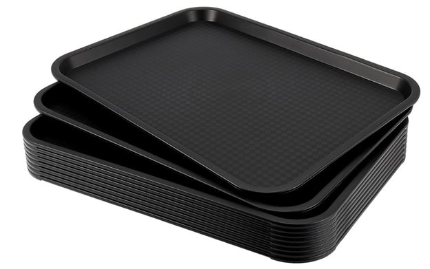 • Non-Slip Textured Surface: The trays feature a specialized textured surface that keeps plates, bowls, glasses, and utensils securely in place while being carried. Say goodbye to slipping and accidental spills during busy service times.