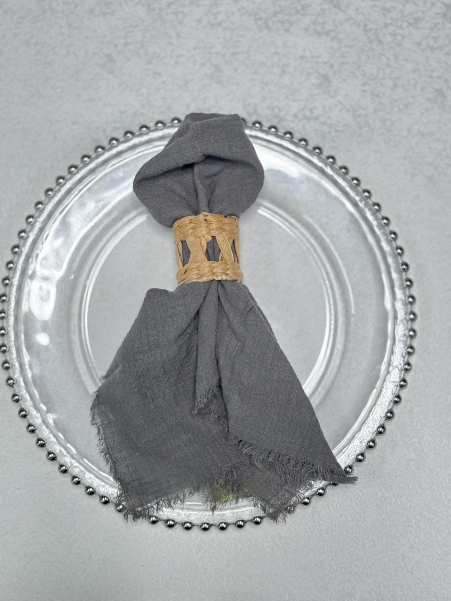Our Charcoal Cheesecloth Napkin - 02 is a versatile option that can complement various decor styles and color palettes. Ideal for formal events, this napkin exudes a sense of luxury and refinement, creating a sleek and modern atmosphere. Whether you prefer vibrant hues for a bold contrast or metallic accents for a glamorous look, these napkins can effortlessly elevate your tablescapes.