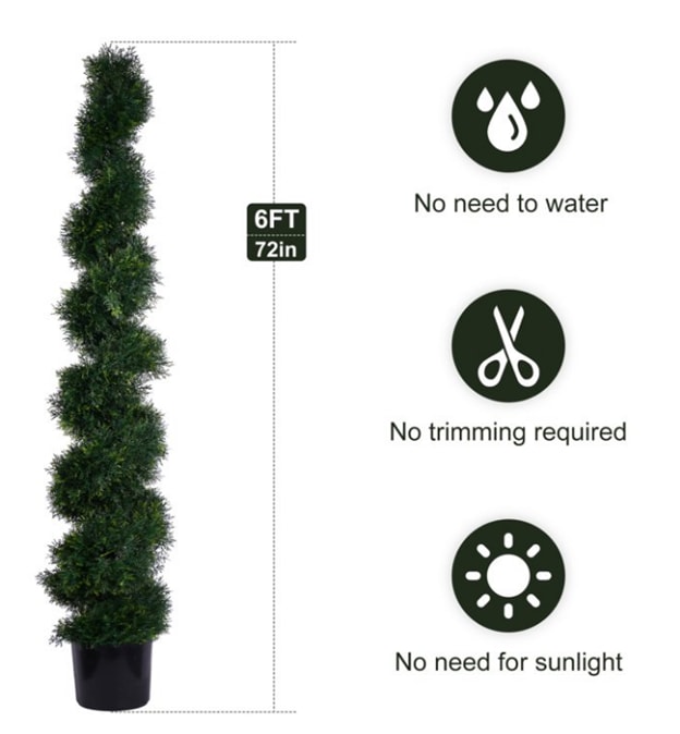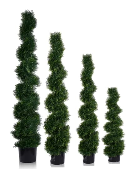 Our Spiral Topiary Tree - 6ft is a versatile and stylish addition to any setting. Its compact size makes it easy to place in various locations, adding a touch of charm and greenery wherever it's placed. Make a statement with this topiary tree and create a visually appealing atmosphere that will impress your guests.
