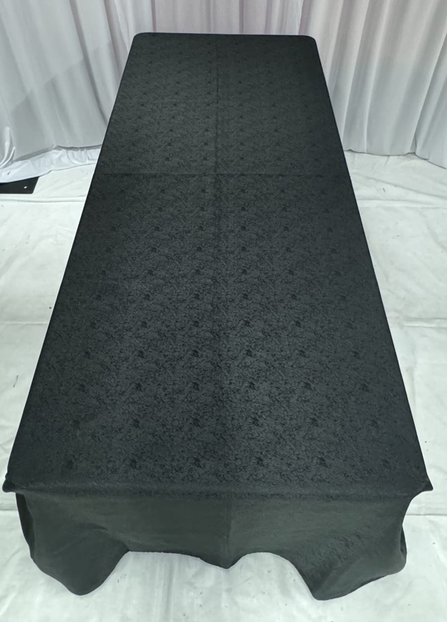 Make your events truly special with our Covington Rectangular - Black tablecloth! Perfect for 6ft rectangular tables, this stunning floor-length tablecloth adds a touch of elegance to any occasion. Whether you're hosting a wedding, a corporate event, or a special celebration, this tablecloth is a must-have for your decor.
