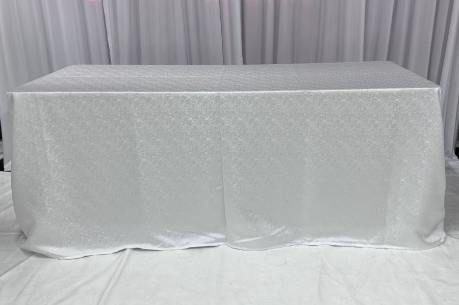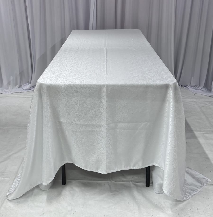 Make your events truly special with our Covington Rectangular - White tablecloth! Perfect for 6ft rectangular tables, this stunning floor-length tablecloth adds a touch of elegance to any occasion. Whether you're hosting a wedding, a corporate event, or a special celebration, this tablecloth is a must-have for your decor.