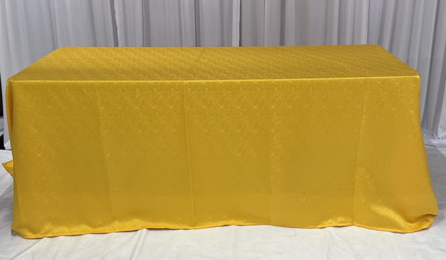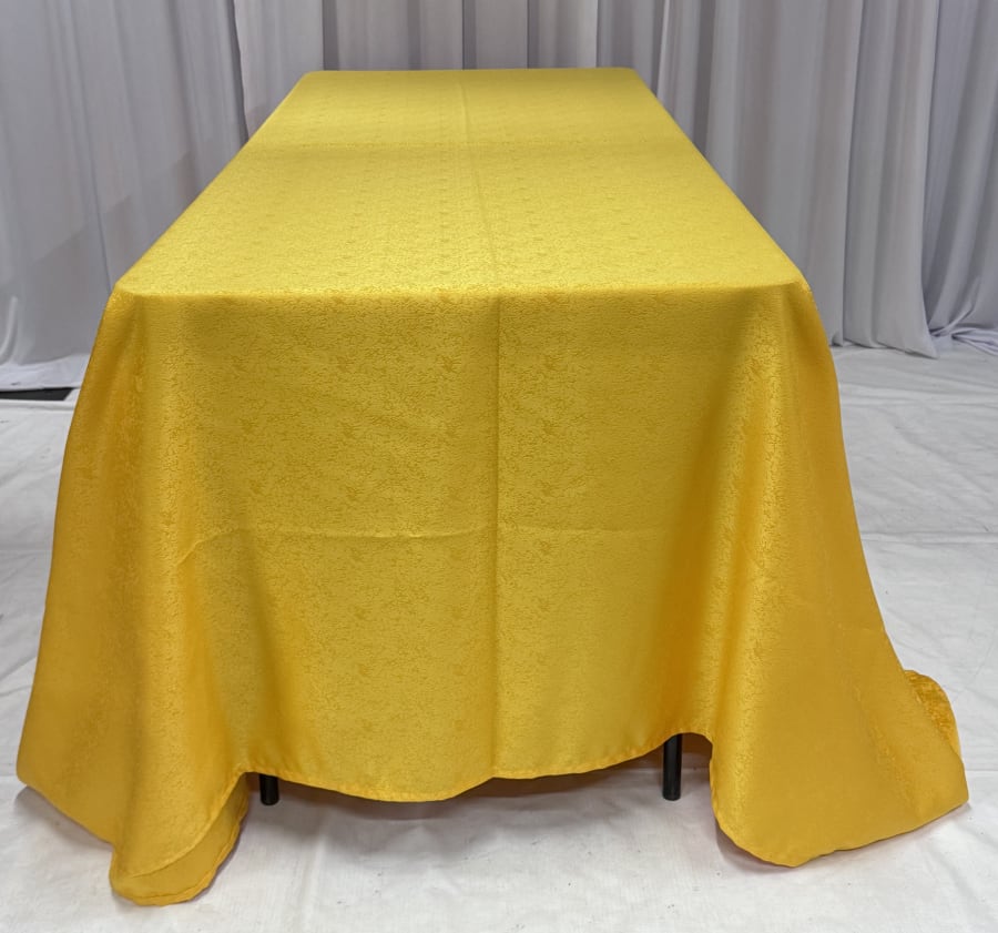 Make your events truly special with our Covington Rectangular - Yellow tablecloth! Perfect for 6ft rectangular tables, this stunning floor-length tablecloth adds a touch of elegance to any occasion. Whether you're hosting a wedding, a corporate event, or a special celebration, this tablecloth is a must-have for your decor.