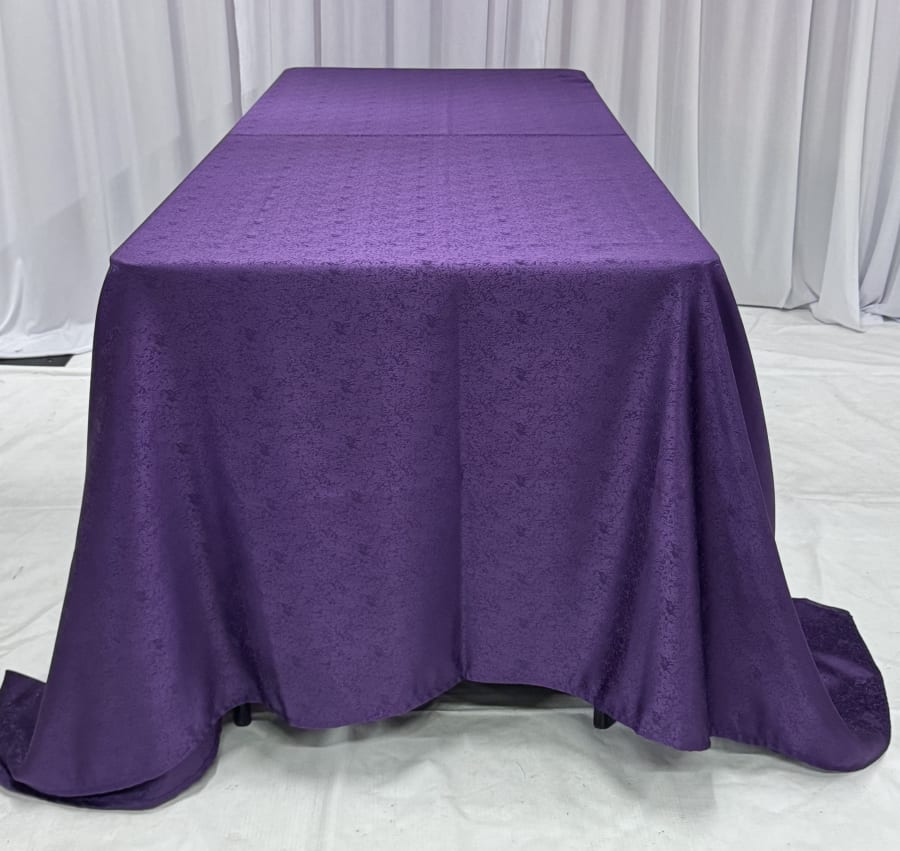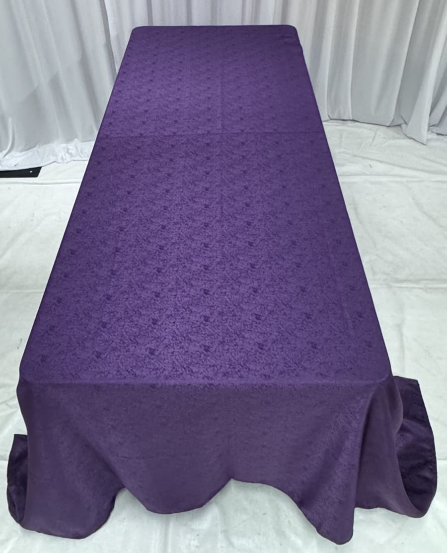 Make your events truly special with our Covington Rectangular - Purple tablecloth! Perfect for 6ft rectangular tables, this stunning floor-length tablecloth adds a touch of elegance to any occasion. Whether you're hosting a wedding, a corporate event, or a special celebration, this tablecloth is a must-have for your decor.