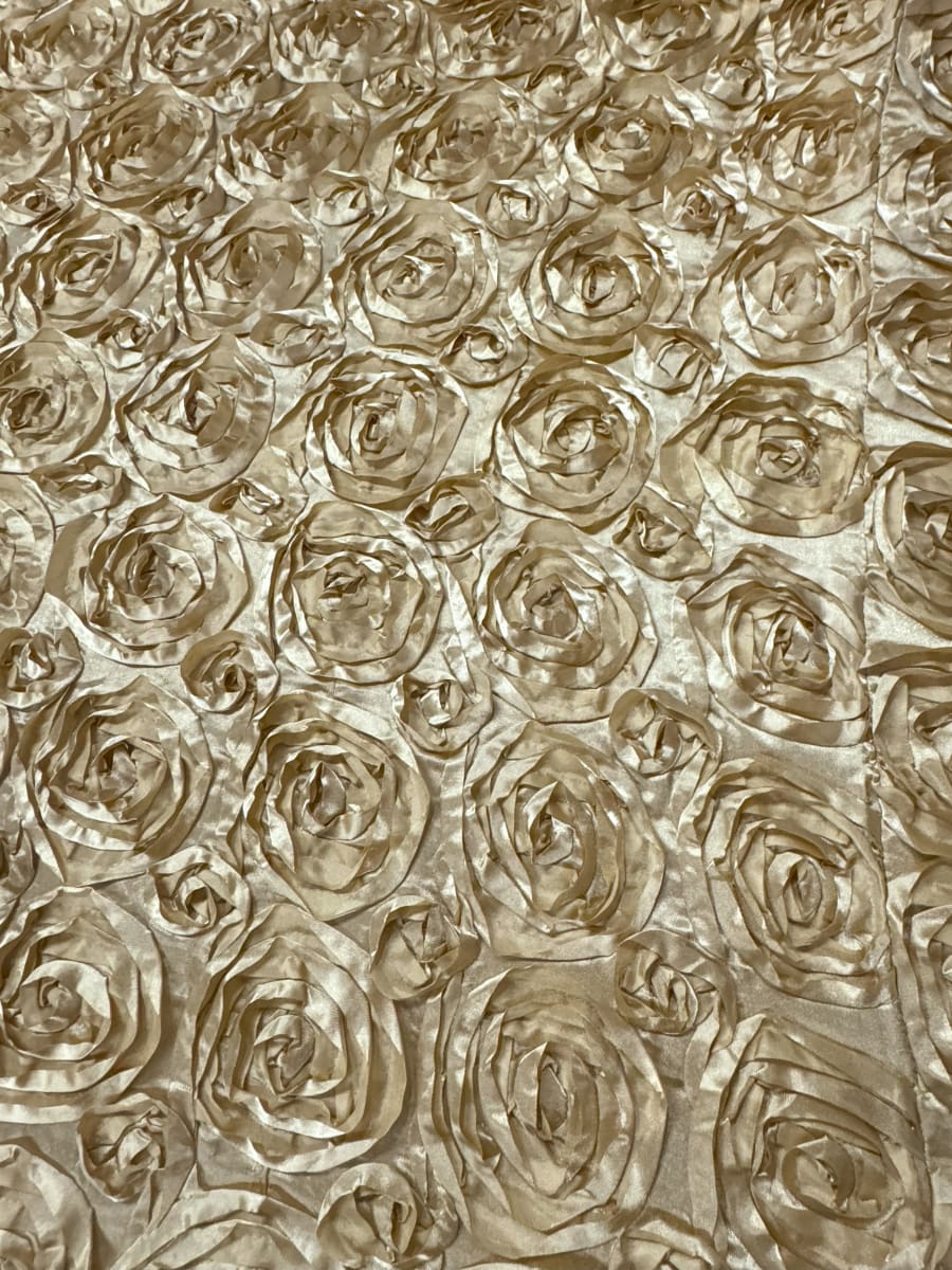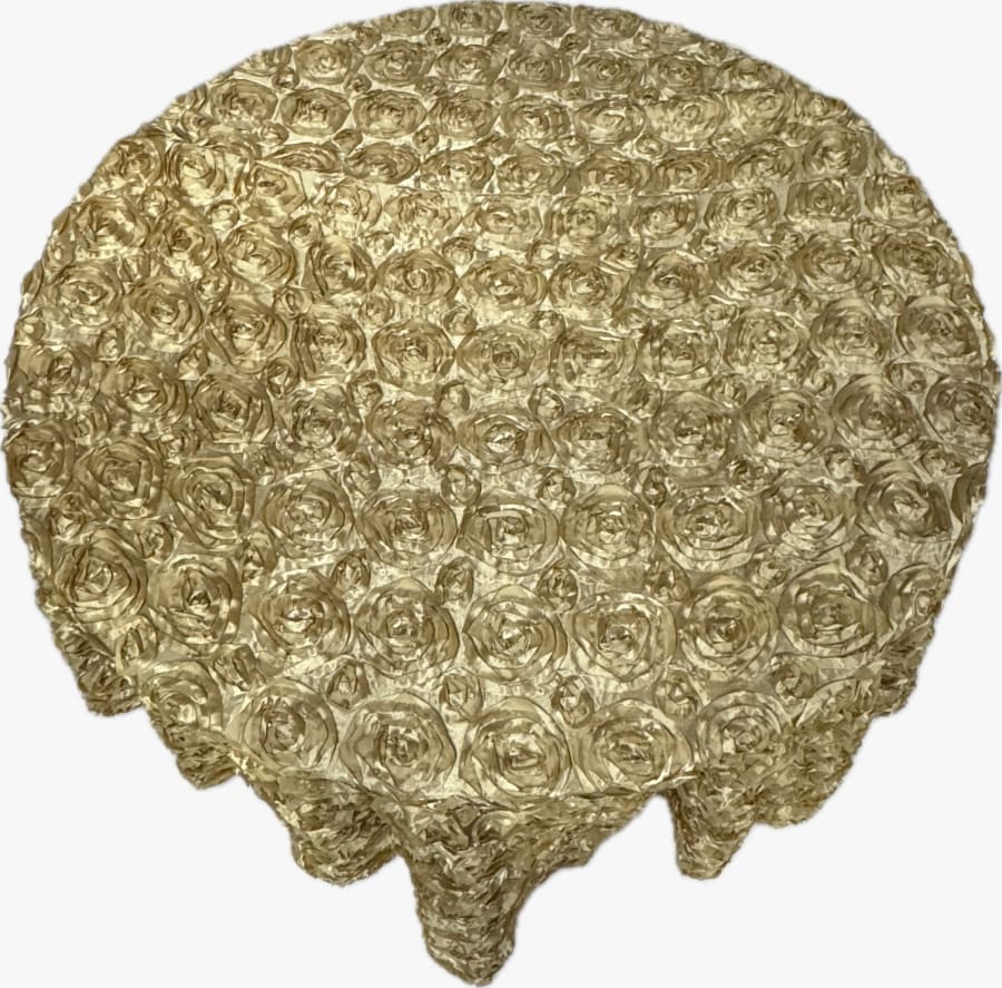 Transform your event tables into elegant masterpieces with our Gold Rosette Round tablecloth. This exquisite tablecloth is designed to add a touch of sophistication and charm to any occasion, making it perfect for weddings, banquets, and special events. 🌟