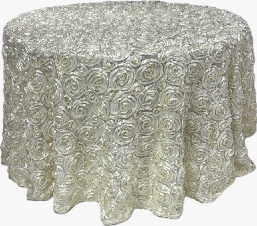 Transform your event tables into elegant masterpieces with our Ivory Rosette Round tablecloth. This exquisite tablecloth is designed to add a touch of sophistication and charm to any occasion, making it perfect for weddings, banquets, and special events. 🌟