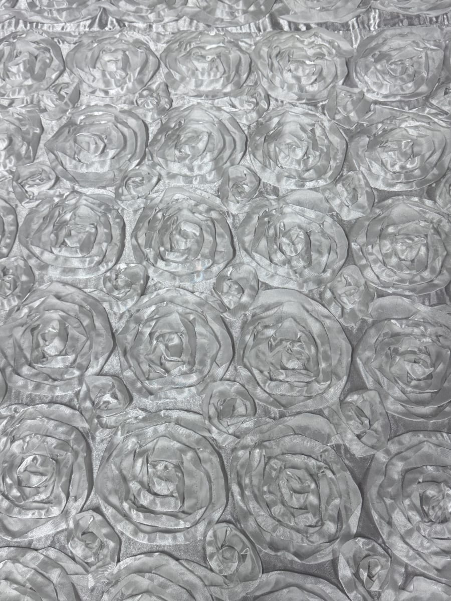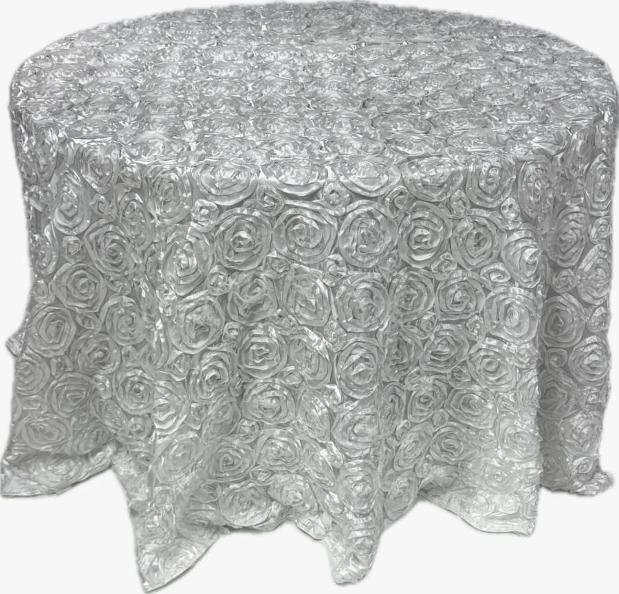 Transform your event tables into elegant masterpieces with our White Rosette Round tablecloth. This exquisite tablecloth is designed to add a touch of sophistication and charm to any occasion, making it perfect for weddings, banquets, and special events. 🌟