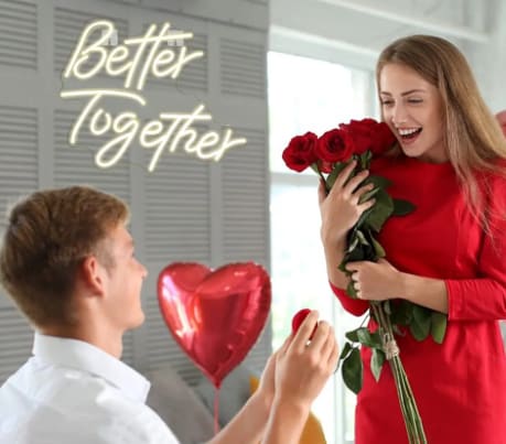 Add a touch of magic to your proposals, weddings, or anniversaries with the Better Together Neon Sign. Its dreamy shape and colors create a romantic and fairytale effect that is sure to captivate hearts. With dimensions of 16.5"L x 13.5"W, this neon sign is the perfect statement piece to make your celebrations truly unforgettable.