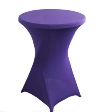 Enhance the look of your event with our elegant Cocktail Spandex Tablecloth in vibrant Purple. Perfectly designed to fit 30" round cocktail tables, this tablecloth adds a touch of sophistication and charm to any occasion. Crafted from high-quality spandex material, it offers a snug fit and a sleek, wrinkle-free appearance.