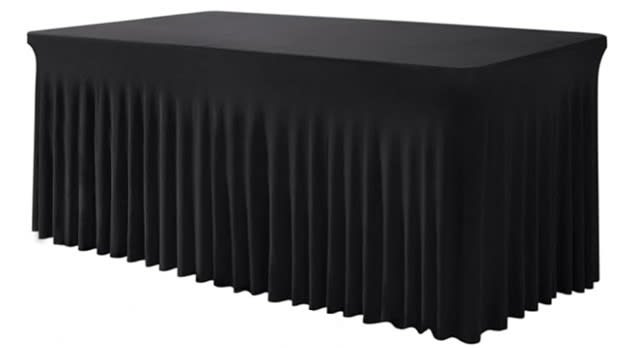 Transform your event's food station with our stylish Rectangular Spandex Tablecloths in Black. These skirted tablecloths are not only elegant but also practical, making them perfect for a variety of occasions.