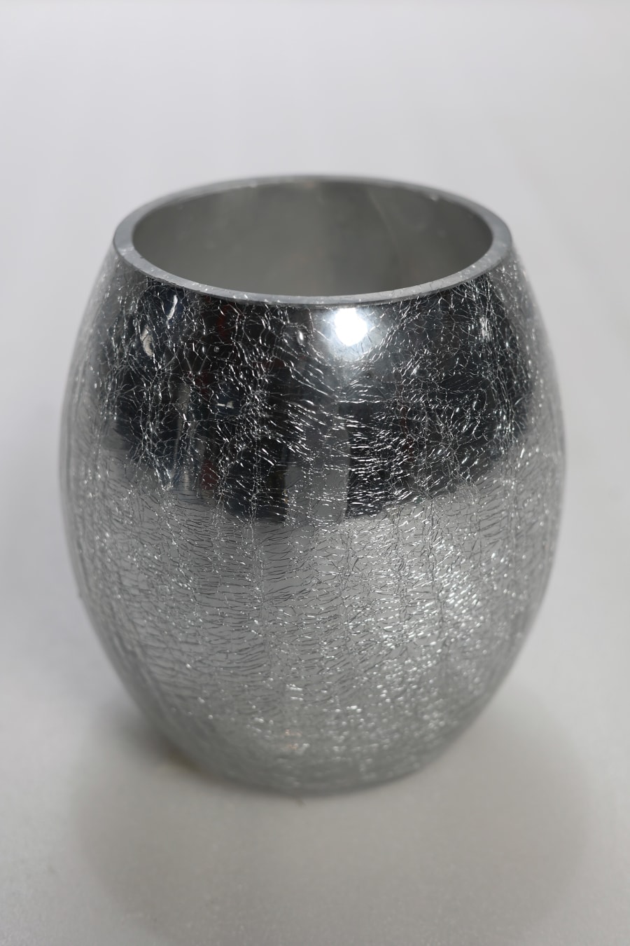 The Silver Crackled Vase boasts a one-of-a-kind design that is sure to impress your guests. Its silver hue and crackled texture create a beautiful visual effect, making it a standout piece in any room.
