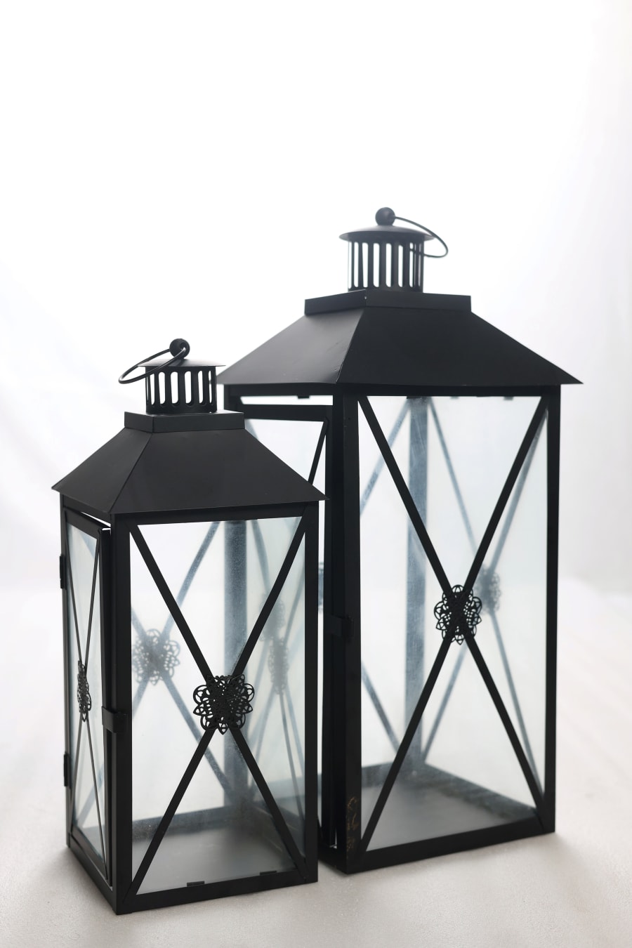 Make a statement at your next formal event with our stunning Lantern Centerpiece in Black with Glass. This elegant centerpiece adds a touch of sophistication and charm, perfect for weddings, anniversary celebrations, or any special occasion. The sleek black design paired with the delicate glass detailing creates a beautiful contrast that will captivate your guests.