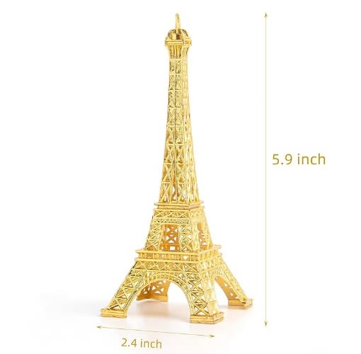 Enhance your special occasions with the stunning Eiffel Tower - Gold 6" centerpiece. Standing at a height of 5.9 inches and a width of 2.4 inches, this elegant piece is perfect for adding a touch of glamour to your events.