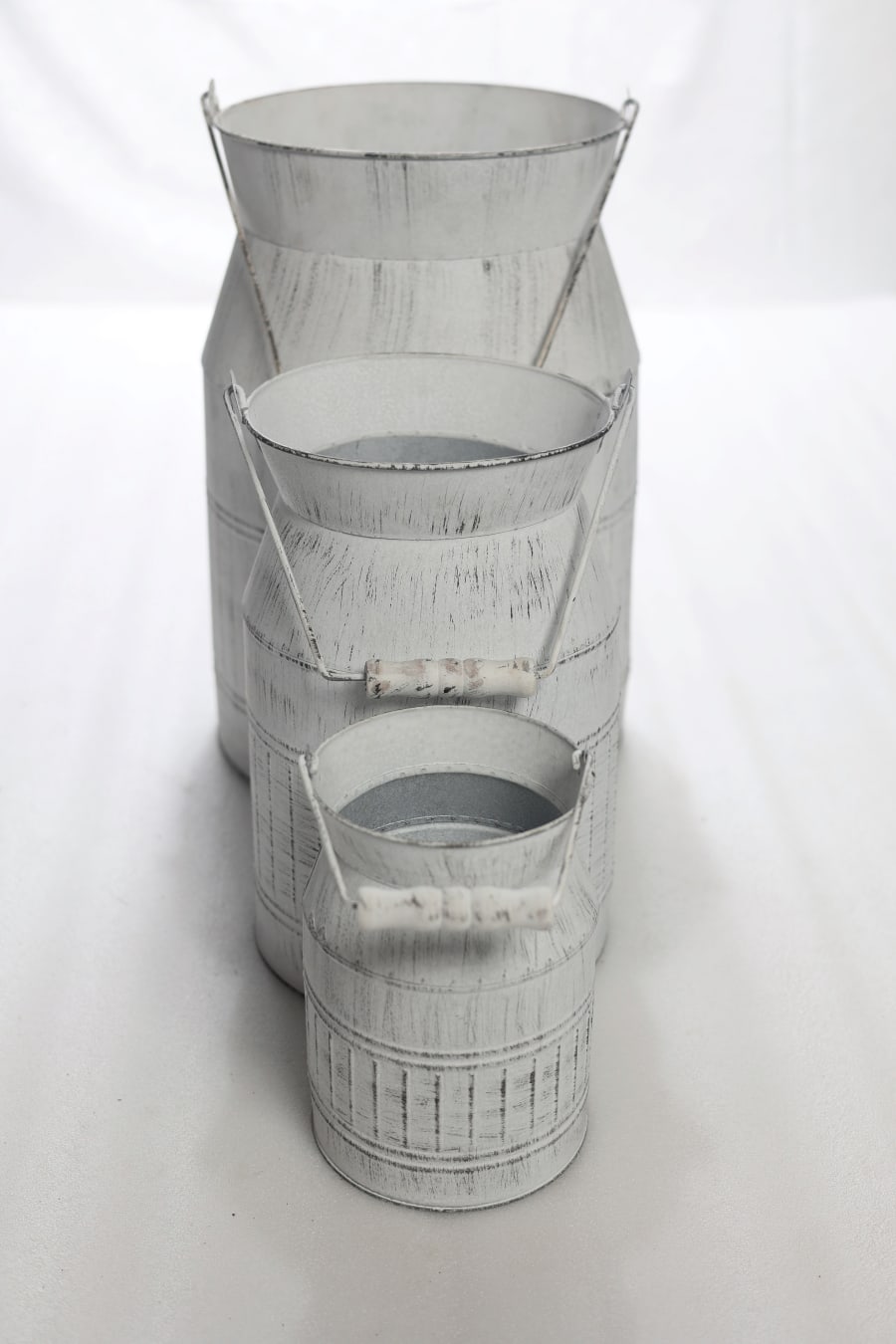 Elevate your event decor with the Rustic 3pc Pail - White.jpg and enjoy the timeless appeal of this versatile set. Order yours today for a touch of rustic elegance!