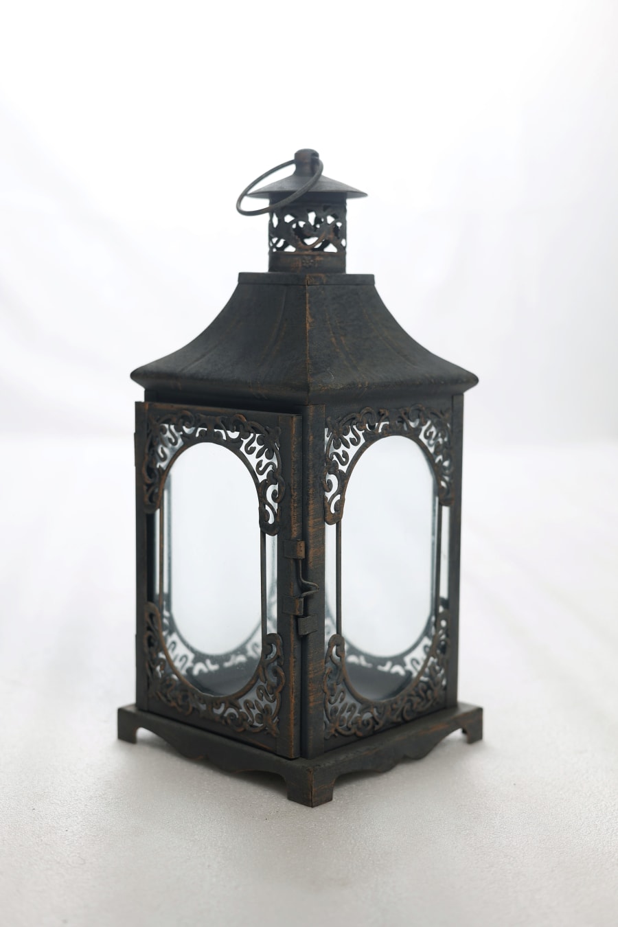 Enhance your event decor with our charming Lantern Centerpiece - Rustic with Glass - Small Bronze. 🕯️ This small lantern is the perfect complement to its larger partner, creating a harmonious and elegant theme for weddings and special occasions. Crafted with a durable bronze metal frame, this lantern exudes rustic charm and sophistication. The glass window provides a warm glow when paired with a candle or fairy lights, creating a cozy and inviting atmosphere. 🌟