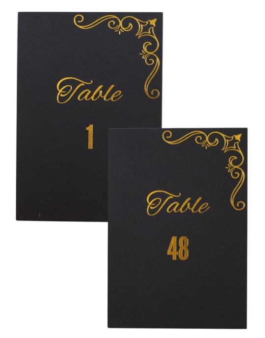 Say goodbye to the hassle of assembling table numbers. Our Table Numbers - Black & Gold require no assembly. Simply unpack the set and place the table numbers on the designated tables. For added elegance, you can pair them with gold table number holders, wooden table number holders, or any other holder of your choice.