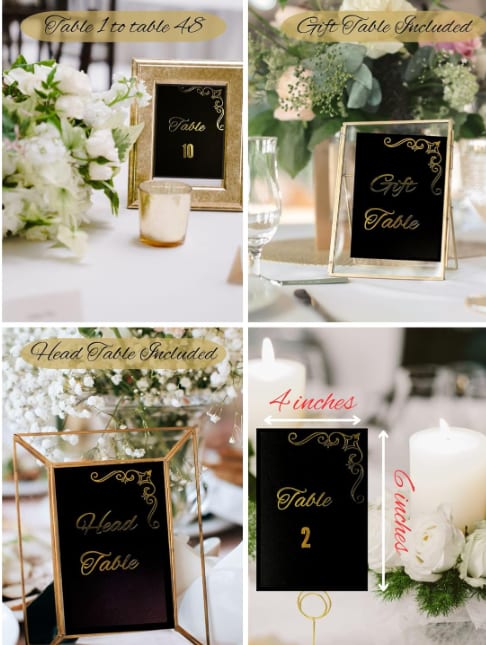Our table numbers set includes numbers 1-48, ensuring you have ample options to cover all your tables. Additionally, we provide extra cards for the head table and gift table, adding a personalized touch and making it easier for your guests to navigate the event space.