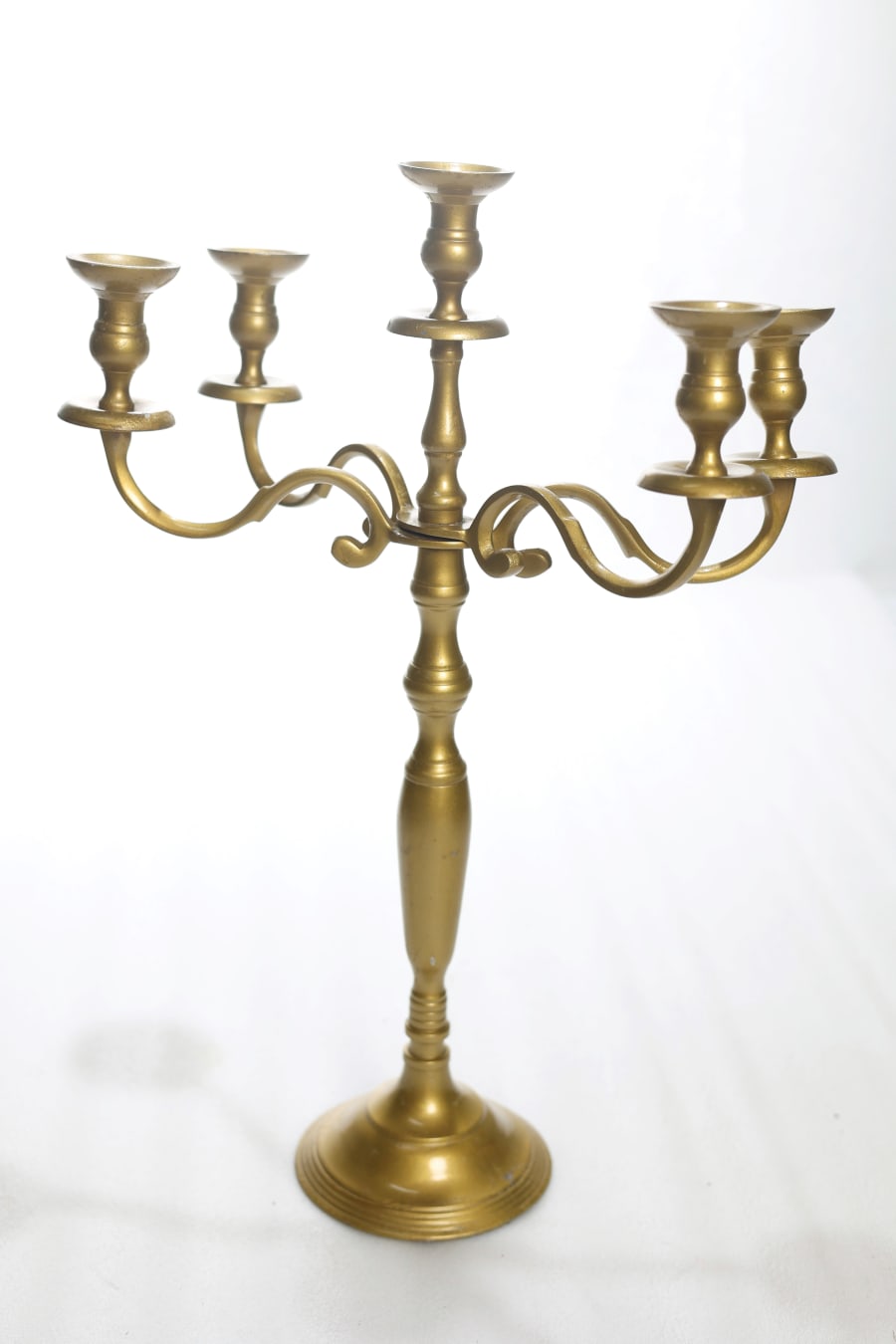 Enhance the charm of your event with the 5 Arm Candle Holder - Gold, available for delivery in [Delivery Area]. Elevate your decor and create unforgettable moments with this stunning centerpiece.