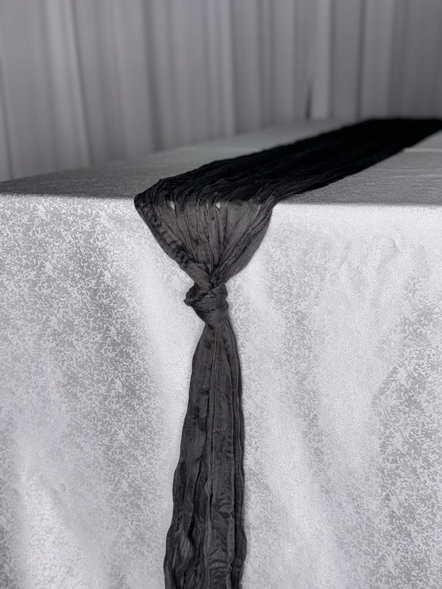 Enhance the look of your special event with our stunning Charcoal Cheesecloth Runner! 🖤 This 12ft long runner adds a touch of elegance and sophistication to any occasion, whether it's a wedding, birthday party, or corporate gathering. The rich charcoal color of the cheesecloth adds a pop of drama to your decor, making it the perfect choice for those looking to create a stylish and modern atmosphere.