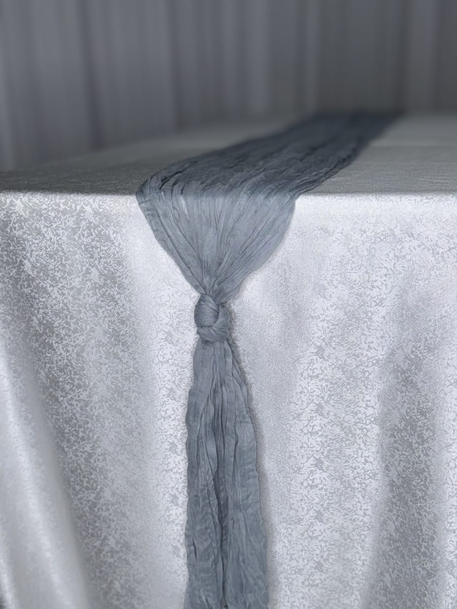 Enhance the look of your special event with our stunning Dusty Blue Cheesecloth Runner! 🖤 This 12ft long runner adds a touch of elegance and sophistication to any occasion, whether it's a wedding, birthday party, or corporate gathering. The rich dusty blue color of the cheesecloth adds a pop of drama to your decor, making it the perfect choice for those looking to create a stylish and modern atmosphere.