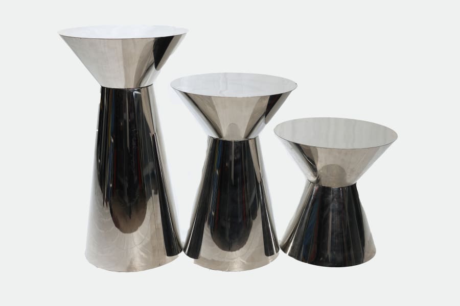 Whether you're hosting a glamorous wedding reception or a chic corporate event, our 3pc Chrome Cocktail Table is the ideal choice to elevate your decor. Its contemporary design and shiny chrome finish make it a versatile piece that complements any setting.