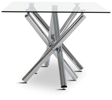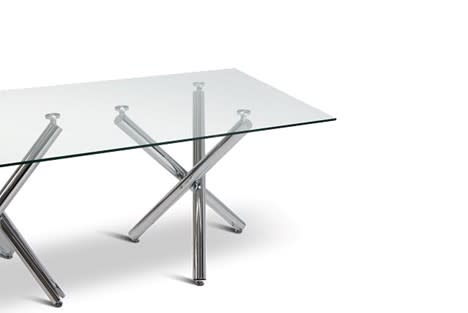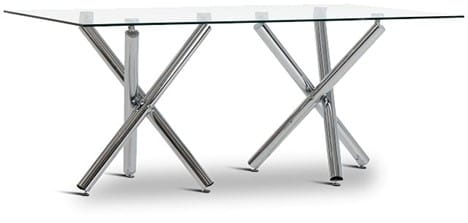 The Quincy Glass Table boasts a sleek, chrome double pedestal base that not only adds a touch of contemporary elegance but also offers robust support. Its clean lines and transparent glass surface create an open and airy feel, making it a versatile addition to any décor style. Measuring 6 feet in length, this table comfortably seats up to 8 people, providing ample space for both intimate family dinners and festive gatherings.