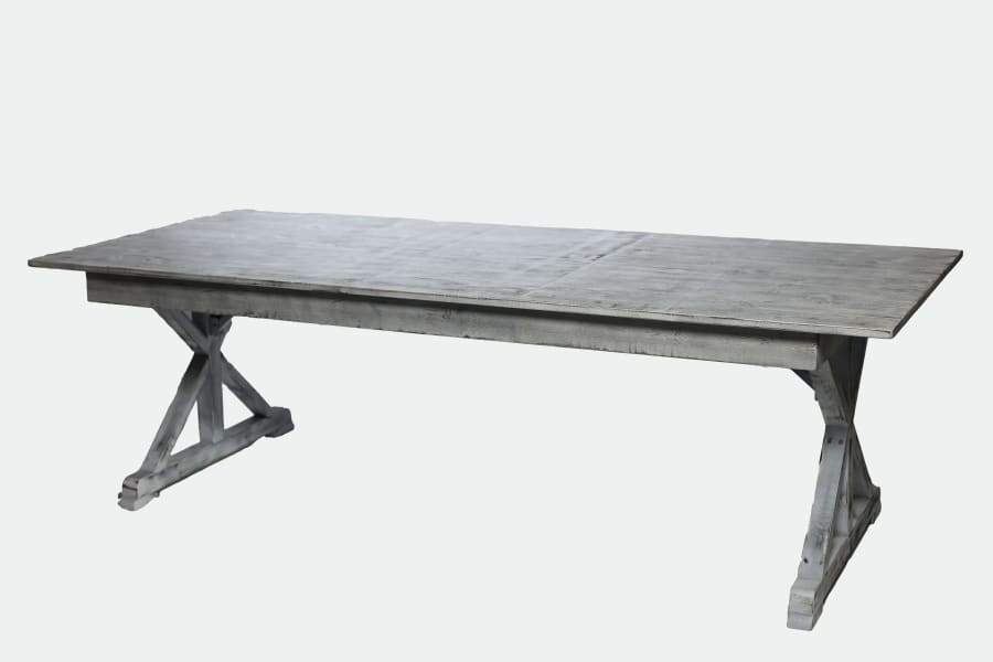 Make a statement at your next event with our stunning 8ft Silver Farm Table. This elegant and rustic table is the perfect addition to any special occasion, whether it's a wedding, birthday party, or corporate event. Crafted with high-quality materials, this farm table exudes charm and sophistication.