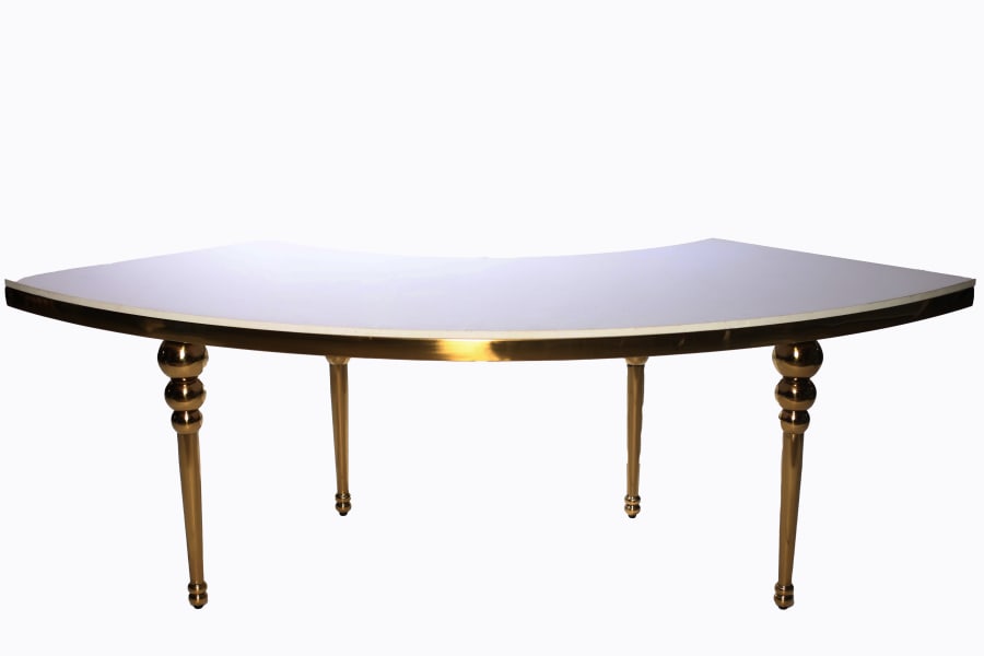 We are committed to providing high-quality event furniture and decor to our customers in Delivery Areas, ensuring that your event is a success from start to finish. Don't miss out on the opportunity to elevate your event decor with our White and Gold Serpentine Table. Order yours today and make a lasting impression on your guests!